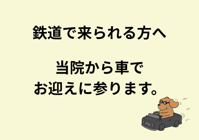 鉄道で来られる方は、当院から車でお迎えに参ります。